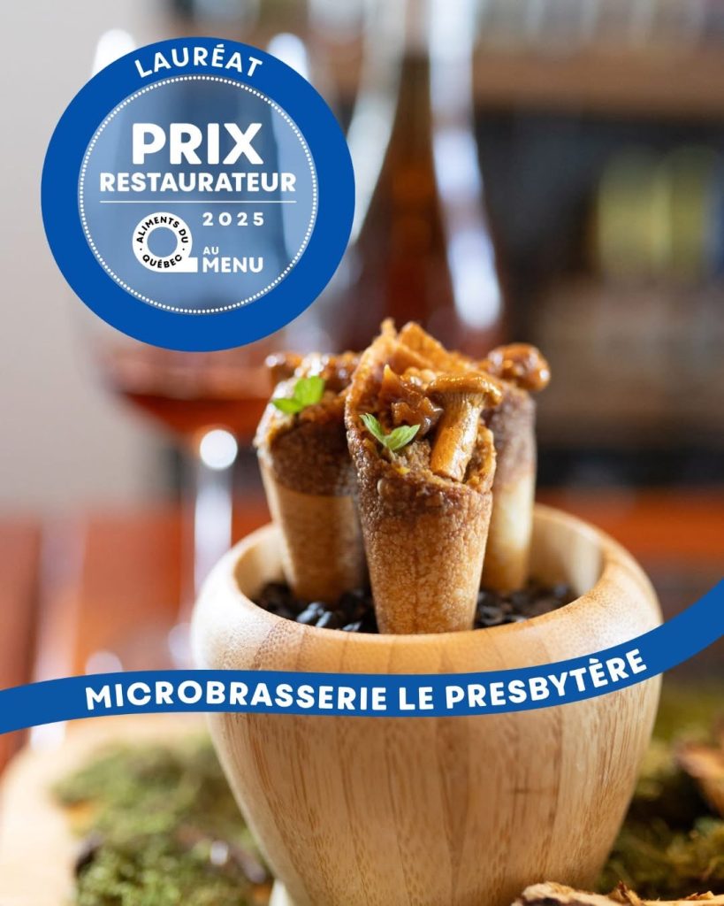 « Ce prix décerné à la Microbrasserie Le Presbytère est pleinement mérité », a salué Isabelle Roy, directrice générale d’Aliments du Québec. « Félicitations également au Restaurant 1668 et au Baumier, qui se distinguent comme des exemples inspirants pour l’industrie. »