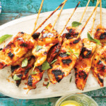 Préchauffer le barbecue à feu moyen-vif et en huiler la grille.Enfiler les bandelettes de poulet sur les brochettes.