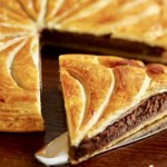 La galette des rois au chocolat avec son cœur chocolaté et aux amandes séduira vos convives. À déguster avec un cidre doux pour un accord parfait.