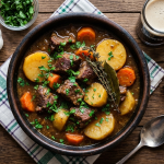 Couvrir et laisser reposer 10 minutes hors du feu avant de servir — les saveurs vont se concentrer.Servir bien chaud dans des assiettes creuses ou des bols rustiques, accompagné de pain soda irlandais ou d’une bonne baguette de campagne pour saucer. Proposer une pinte de Guinness fraîche pour l’authenticité irlandaise !