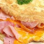 Ajouter les lanières de jambon et le fromage râpé sur la moitié de l'omelette et rabattre l'autre moitié dessus. Laisser cuire à nouveau 2 minutes et servir encore chaude