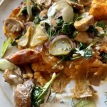 Patates douces aux champignons épicés et sauce yaourt aux herbes citronnées