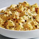 Ajouter le mélange aux pommes de terre, ajouter le céleri et les oignons et bien mélanger le tout.