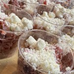 Présenter dans l'assiette à l'aide d'un emporte-pièce, ou déposer directement sur les croûtons. Émietter généreusement le fromage de chèvre feta sur le dessus. Déguster sans attendre.