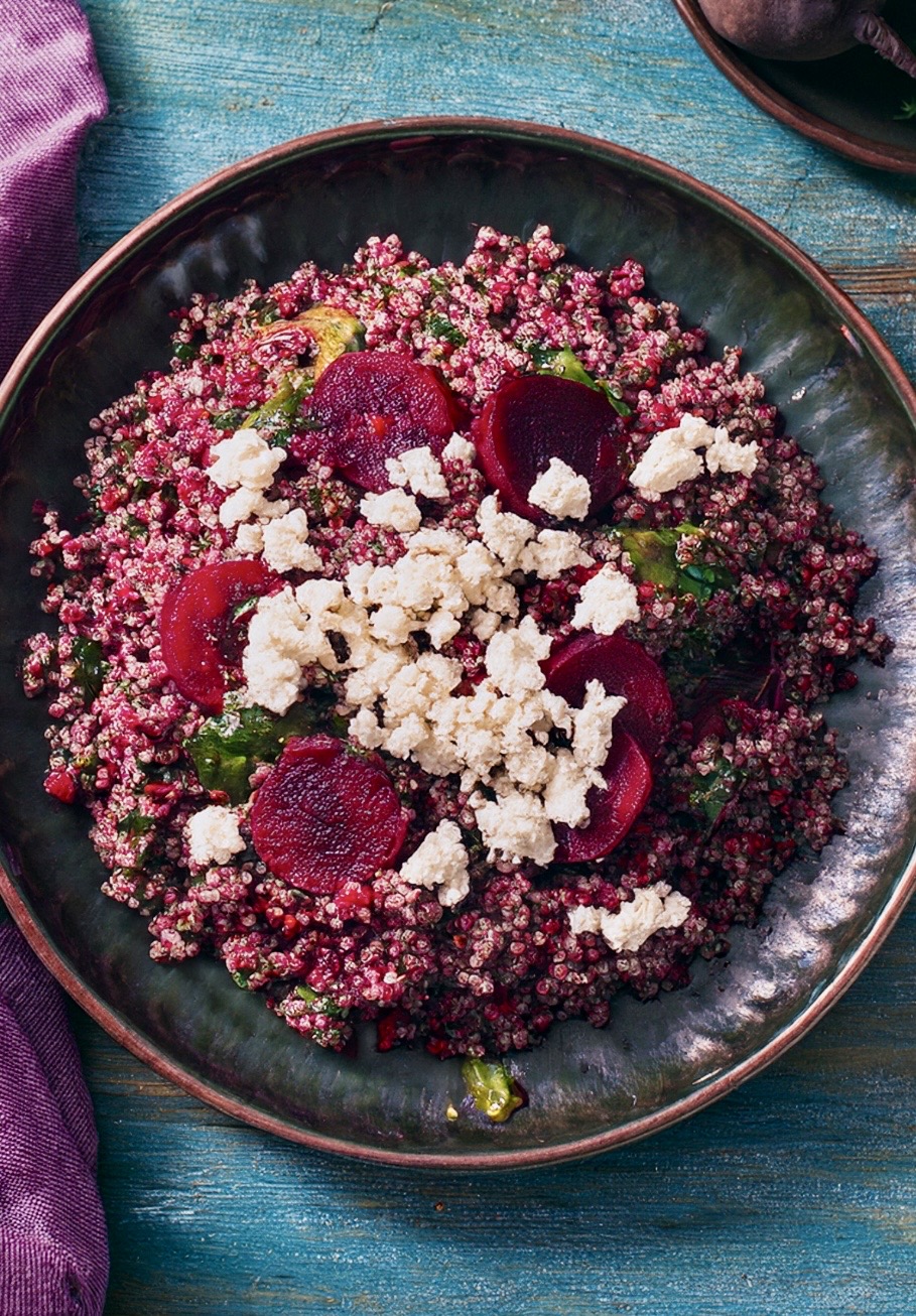 Une symphonie de textures et de saveurs pour retrouver l'équilibreCette salade marie l'élégance des betteraves rôties à la douceur du quinoa parfaitement cuit, sublimés par l'onctuosité de la feta et le croquant du céleri. Un plat complet et nutritif, parfaite pour se ressourcer après les fêtes !