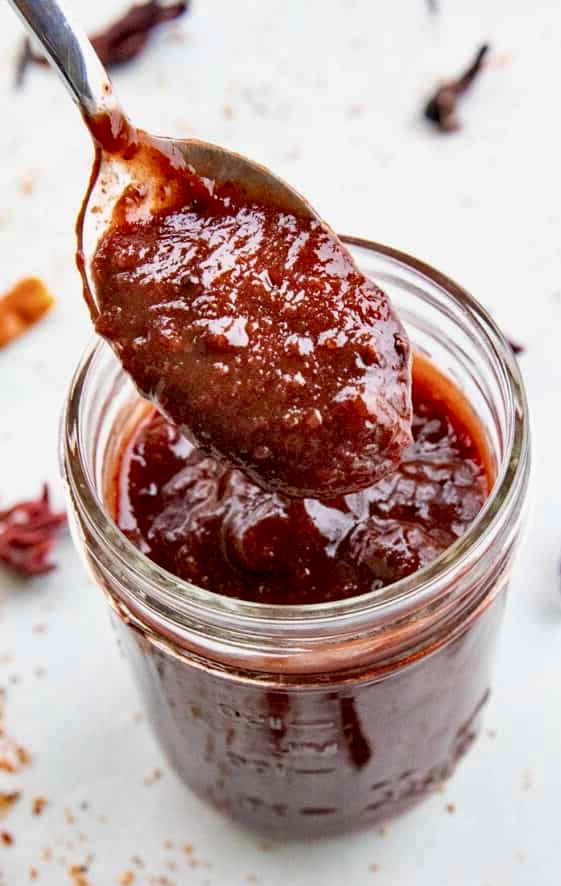 La sauce chamoy est un condiment végétalien à base de fruits séchés et d'hibiscus. Originaire du Mexique, elle possède des racines asiatiques, ce qui a tout pour plaire!
