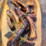 Couper entre chaque côte levée pour obtenir des os individuels.Les faire frire dans l’huile à 325°F (160°C à 170°C) durant environ 2-3 minutes jusqu’à ce que les côtes levées deviennent bien croustillantes.