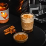 Couvrir de lait moussé et saupoudrer d’un soupçon d’épice.