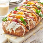 Trancher entre les tranches pour créer une portion avec garniture de fruits frais à l’intérieur.Servir et déguster aussitôt !