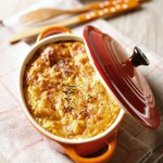 Vérifiez la cuisson du gratin en enfonçant la pointe d’un couteau dans la courge, elle doit être tendre. Dégustez à la sortie du four.