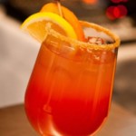 Mouiller l’extrémité d’un grand verre avec une tranche d’orange.