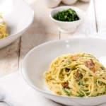 Les pasta alla carbonara (pâtes à la carbonara) sont une spécialité culinaire traditionnelle de la cuisine italienne. À base de pâtes, très souvent des spaghetti, elles sont cuisinées dans une émulsion d'œufs, d'eau chaude et de fromage rapé, accompagné de lardons italiens appropriés.