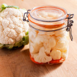 Dans un pot Masson, mettre les sommités de chou-fleur et recouvrir de la solution chaude à hauteur.