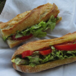 Ajouter quelques pousses de roquette et refermer le sandwich.Croquer à pleine bouche !